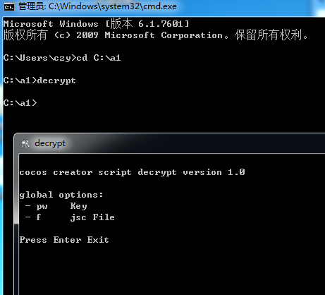 2.所以如果你要解密project.jsc,那么就输入decrypt -pw xxxxxxx -f project.jsc,