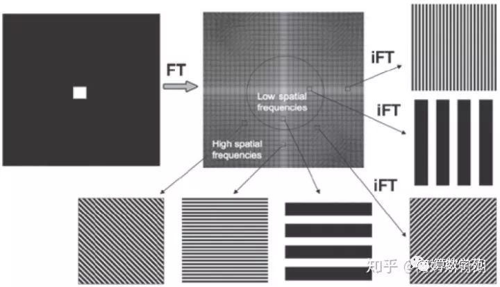 确实是这样,二维FT将一个图像分解成若干个三角平面波之和。如下图: