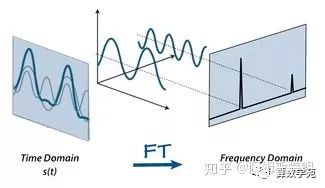 对于一个三角波而言,需要三个参数来确定它:频率,幅度 A ,相位。因此在频域中,一维坐标代表频率,而每个坐标对应的函数值也就是是一个复数,其中它的幅度就是这个频率三角波的幅度 A ,相位就是 。下图右侧展现的只是幅度图,在信号处理中用到更多的也是幅度图。