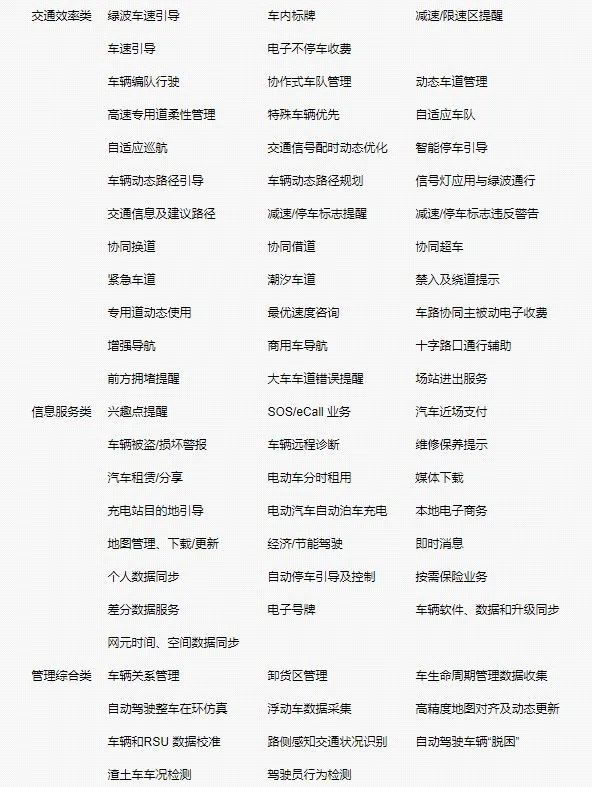 ·动态信息服务技术。及时精准地将各类交通信息动态地发布到边缘和终端;与车辆厂商服务结合,及时提供车辆状态通知、设备提前预警、车辆在线诊断服务和管理;与服务提供商合作提供专有服务,如娱乐服务、信息服务等。