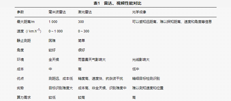 毫米波雷达被广泛应用于高级驾驶辅助系统中,技术相对成熟,具有全天候、探测距离远(大于200 m)、价格低的优势。毫米波雷达主要包括芯片、天线、控制系统以及算法,其中芯片主要由德州仪器、恩智浦、英飞凌提供,技术竞争体现在天线、控制系统和算法上,国内厂商在算法上有很大的提升空间。我国毫米波雷达主要在24 GHz、77 GHz、79 GHz频段,路侧毫米波雷达选择77 GHz频段。79 GHz频段雷达是众多厂商未来争夺的热点,带宽更高(比77 GHz要高出3倍多)、性能更强(分辨率可达5 cm),尚未大规模量产。