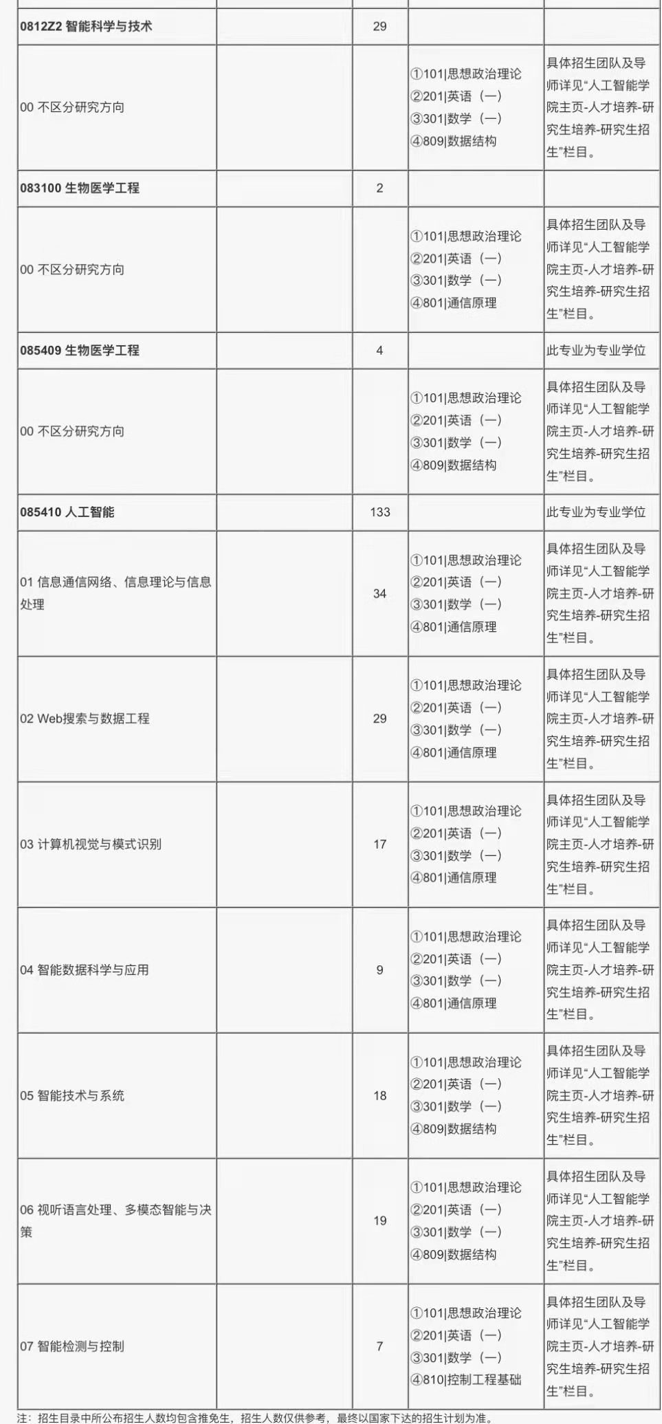 人工智能学院:智能科学与技术(学硕)、人工智能的5组和6组(专硕)、生物医学工程(专硕)。
