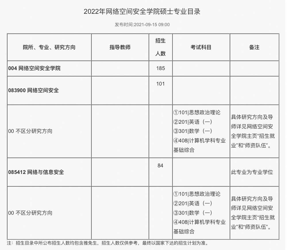 22网络空间安全学院 网安院本年度硕士招生不接收调剂,不实施破格录取。