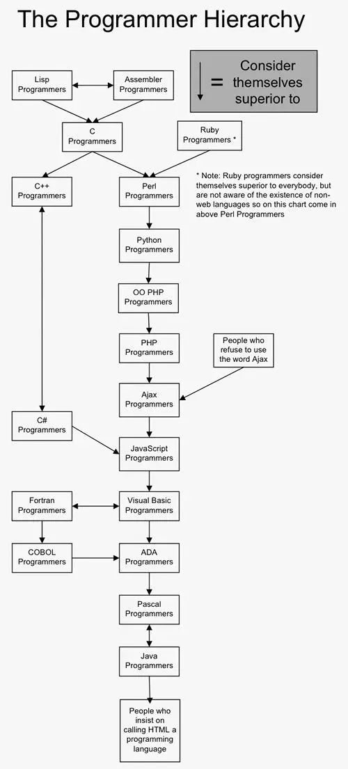 最近几年经常在网络上看到各种程序员鄙视链,其实真实情况是我们都很忙,每天 Bug 都调不完,哪里有空鄙视这,鄙视那。所以很多的的鄙视链大家自己看看,笑一笑就过了,不要太过认真。