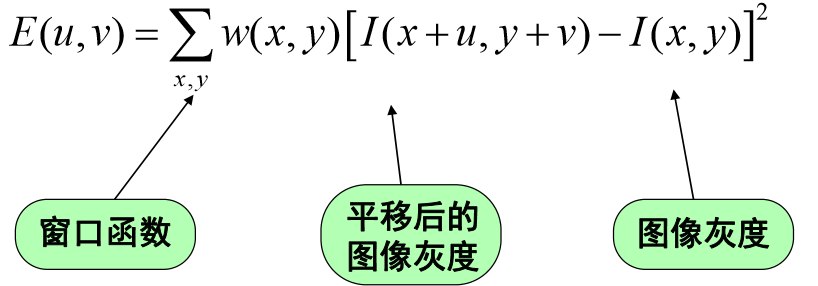 将图像窗口平移[u,v]产生灰度变化E(u,v)
