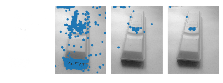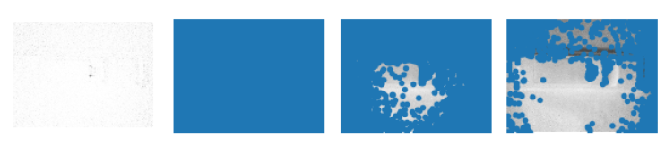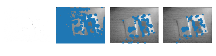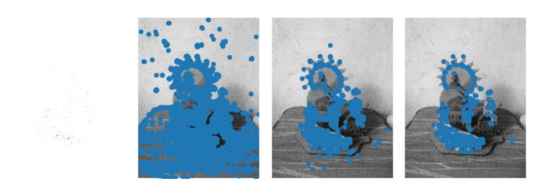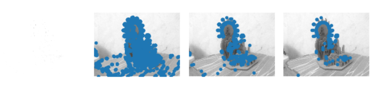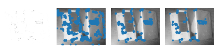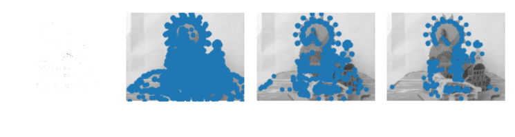 for i, thres in enumerate(threshold):filtered_coords = harris.get_harris_points(harrisim, 6, thres)subplot(1, 4, i+2)imshow(im)print (im.shape)plot([p[1] for p in filtered_coords], [p[0] for p in filtered_coords], '*')axis('off')#原书采用的PCV中PCV harris模块