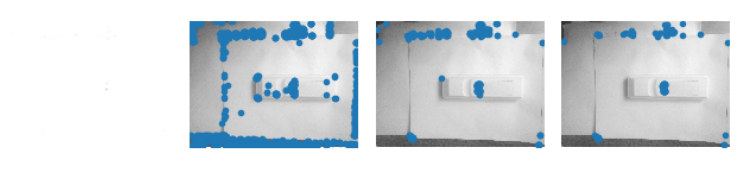 角点算子具有旋转不变性,所以即使在不同的场景下,正面侧面检测出的角点无太大变化。而在亮度不同的情况下,角点检测算子比较敏感,较暗较亮的情况下,检测出的角点差别就会比较大。