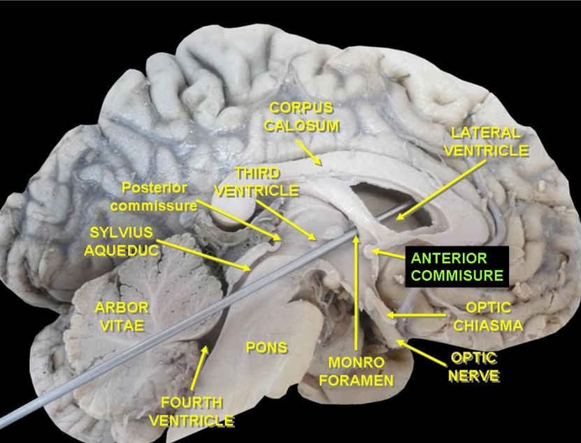 这个是应该算是一个比较权威的介绍图片了,acpc的定位其实只要学会了很好进行定位,还应该注意一点就是,从脑袋后面看的那个解剖图片的定位点应该在中线上。