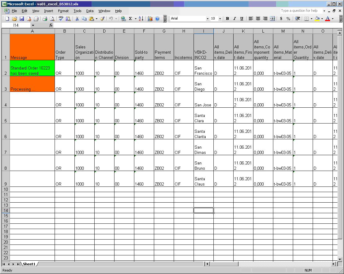 - 查找工作台生成的电子表格。它应该在工作台目录中。打开电子表格,然后输入要上传到 SAP 的数据。 注意:输入完数据后,必须关闭电子表格,并且在上传过程中无法对电子表格进行更改。