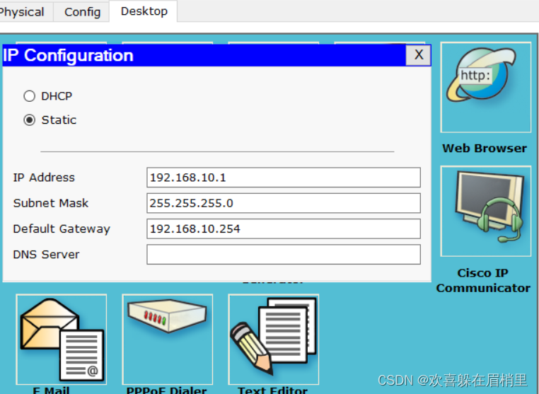 记得一定要配置好网关。如果没有配置pc机,当需要路由去ping跨网段的ip地址是ping的不同的,因为没有网关,ip地址不知道要把数据包发送到哪里,在pc机里面添加网关,就是做配置,就是配置一条默认路由。当路由器在路由表中找不到目标网络的路由条目时,路由器把请求转发到默认路由接口。