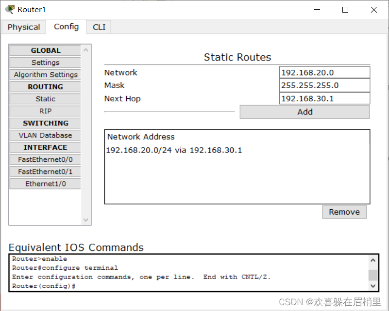 源192.168.20.1 目的ip:192.168.30.1