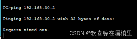 首先我们先测试192.168.20.2pc机去ping192.168.30.2路由器。