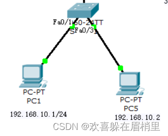 先配置pc1和pc5的ip地址分别为:192.168.10.1、192.168.10.2。