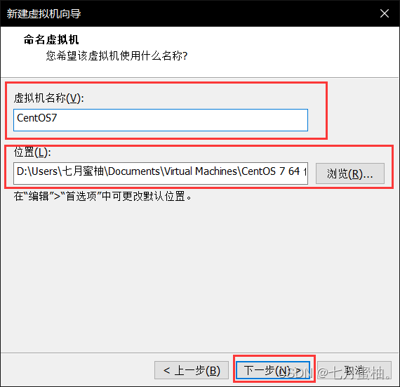 6.设置填写虚拟机名称>设置虚拟机存储位置(路径)>点击下一步