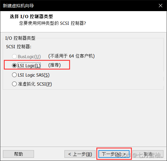 10.选择点击推荐的(LSI Logic)I\O控制器类型>点击下一步