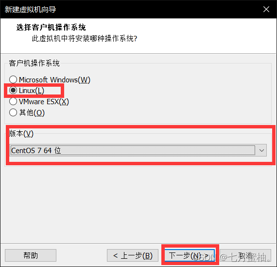 5.点击选择Linux>点击选择CentOS 7 64位>点击下一步