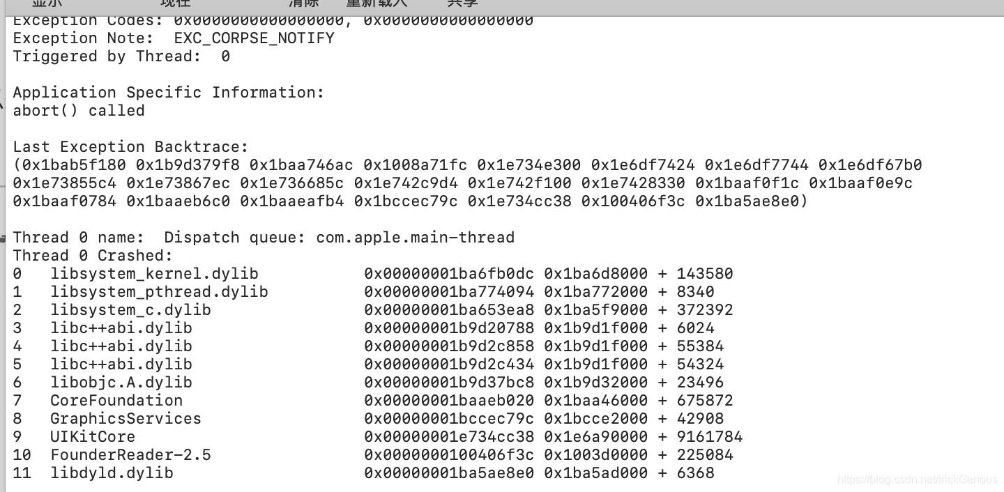 5、重新执行symbolicatecrash命令得到解析后的crash文件 -> new.crash