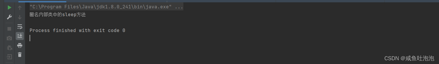 上面的匿名内部类是继承至Father这个类的,当匿名内部类调用sleep方法的时候,根据继承机制他首先在本类中找,刚好本类中有一个sleep方法,他就会执行本类中的方法,结果如下: