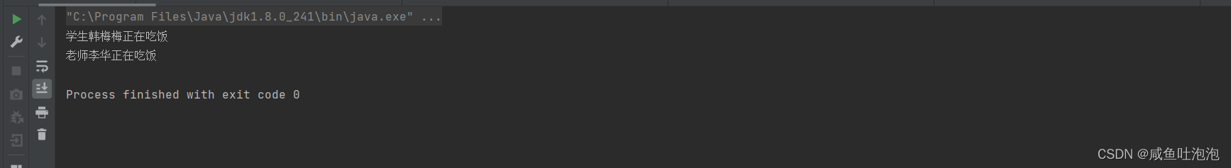 class People{private String name;public void method(){Behavior student = new Behavior() {@Overridepublic void eat() {System.out.println("学生韩梅梅正在吃饭");}};student.eat();Behavior teacher = new Behavior() {@Overridepublic void eat() {System.out.println("老师李华正在吃饭");}};teacher.eat();}