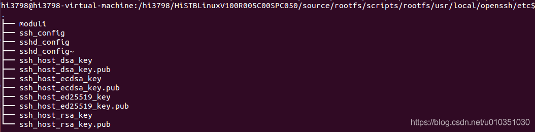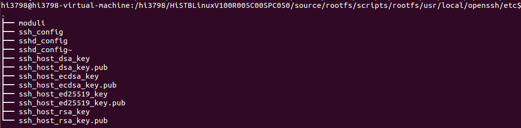 至此,/hi3798/HiSTBLinuxV100R005C00SPC050/source/rootfs/scripts/rootfs/usr/local/openssh/etc目录下有以下文件