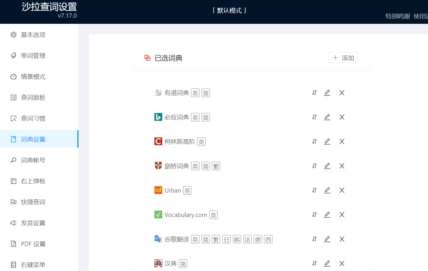 常见有对词典设置 添加以及点击词典账号登陆相关账号