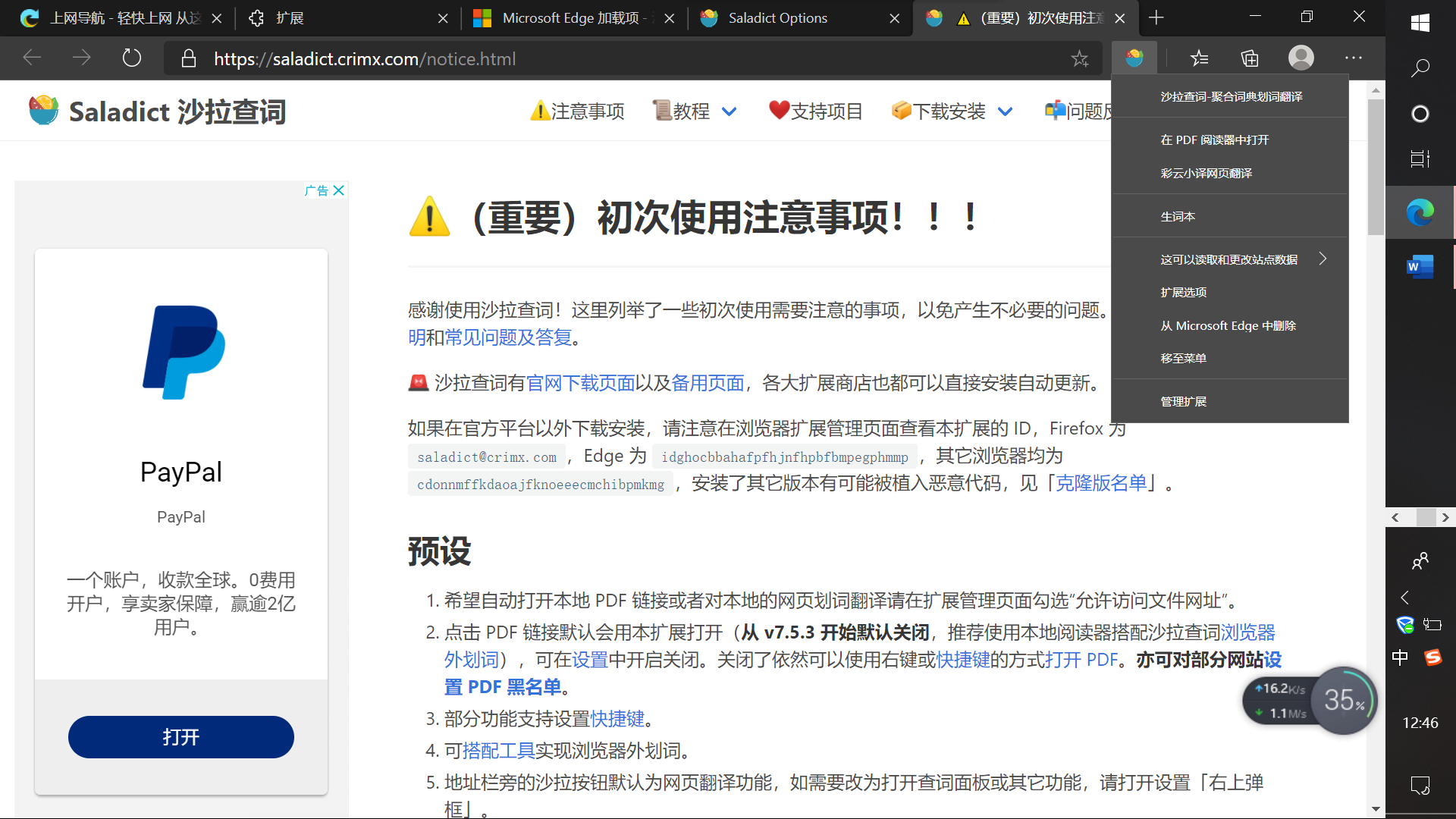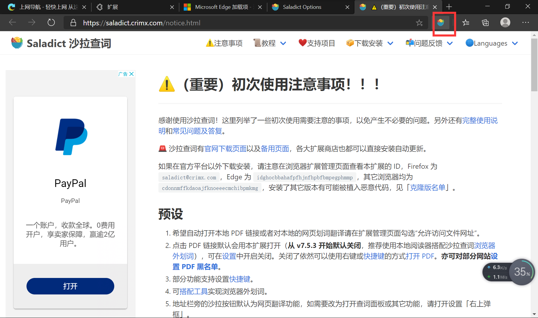 - 使用沙拉划词实现网页多种翻译源进行实时翻译。