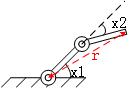 很明显为了确定这个二连杆机器人的运动所需的独立变量个数为2。图中的角度x1和x2就是为了确定二连杆机器人当前状态的一组独立变量。当然这种独立变量并不唯一,我们同样可以选择角度x1和始末两端连线长度r来描述机器人当前状态。在分析力学中这组独立变量又被称为广义坐标,这个概念我们暂时不提,后面会有涉及。