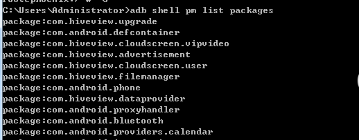 (若不确定包是否已安装,可以用adb shell pm list packages [options] <INTENT> 来进行确认,它的含义是列举出所有包含<INTENT>的package。 e.g. adb shell pm list packages com.hiveview.content)