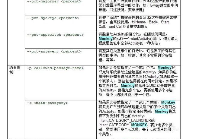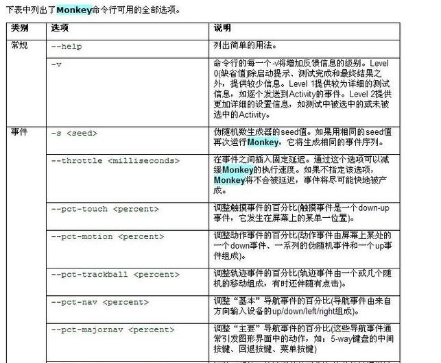adb shell monkey -p 包名 [参数] -v (-v -v) 执行次数 >导出log文件 例: