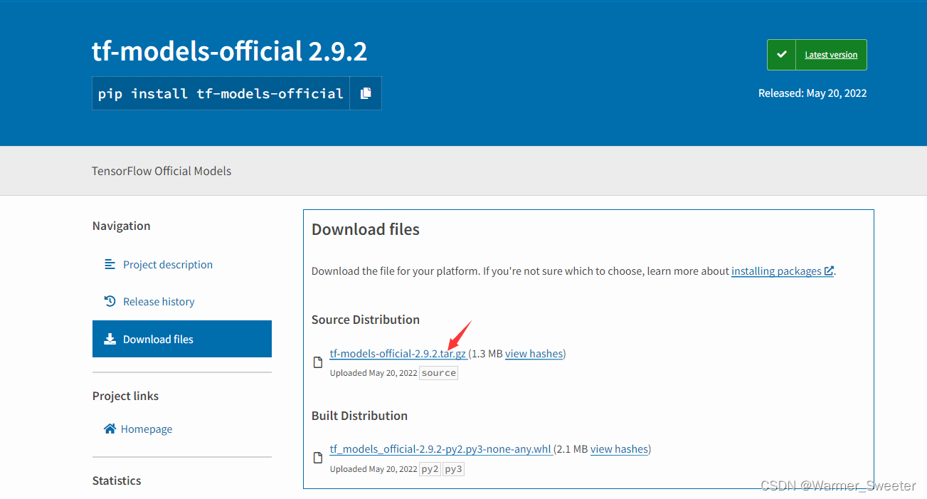1. 找到下载网址,下载该文件tf-models-official · PyPI