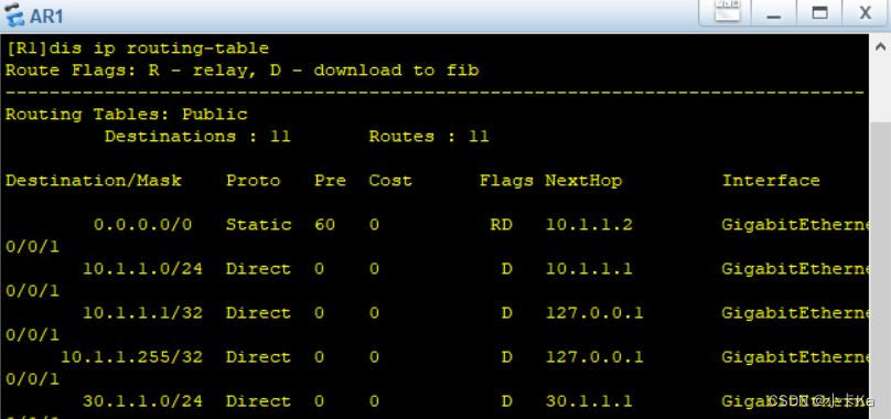 IR1]ip route-static 0.0.0.0 0.0.0.0 10.1.1.2