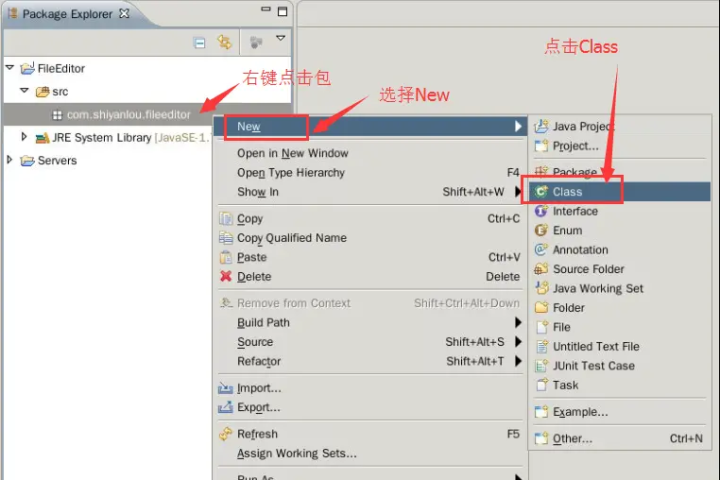 (3)再在同一个包内,创建一个名为 FileEditor 的 Class 文件: