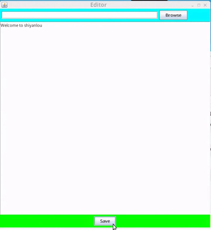 我们要是想查看刚刚保存的文件内容,只需在窗口最上方的文本框中填入文件的完整路径(如 /home/shiyanlou/Desktop/shiyanlou.txt ,然后点击 Browse 按钮即可。如果遇到文件不存在的情况,下方则会显示相关的错误信息。