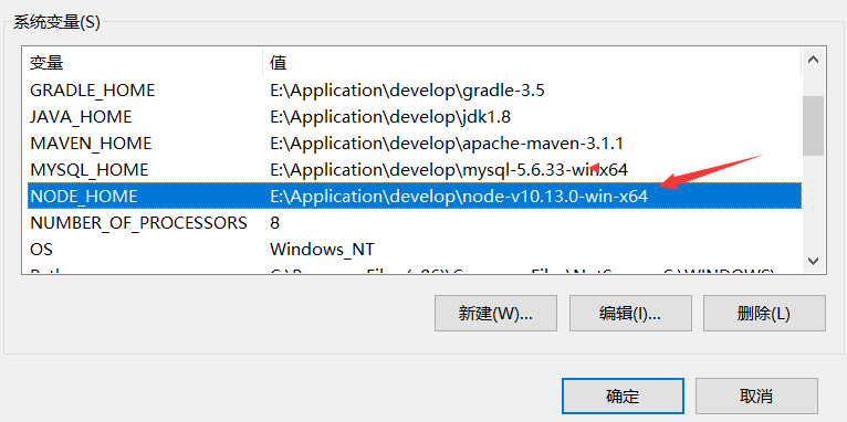 解压并安装到目录E:\Application\develop\node-v10.13.0-win-x64
