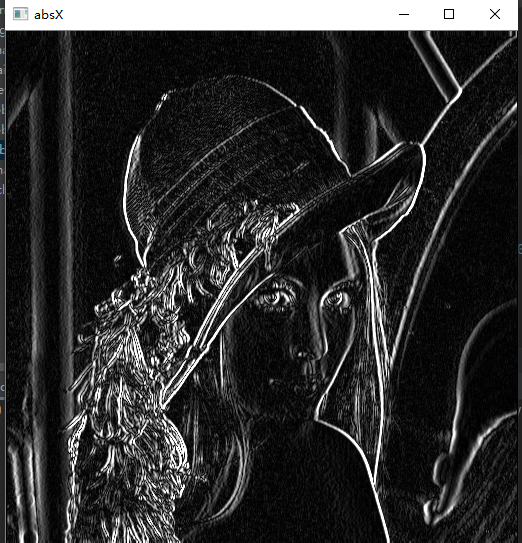 absY = cv2.convertScaleAbs(y)dst = cv2.addWeighted(absX,0.5,absY,0.5,0)cv2.imshow("absX",absX)