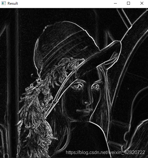 import numpy as npimg = cv2.imread("lena.jpg",0)x = cv2.Sobel(img,cv2.CV_16S,1,0)