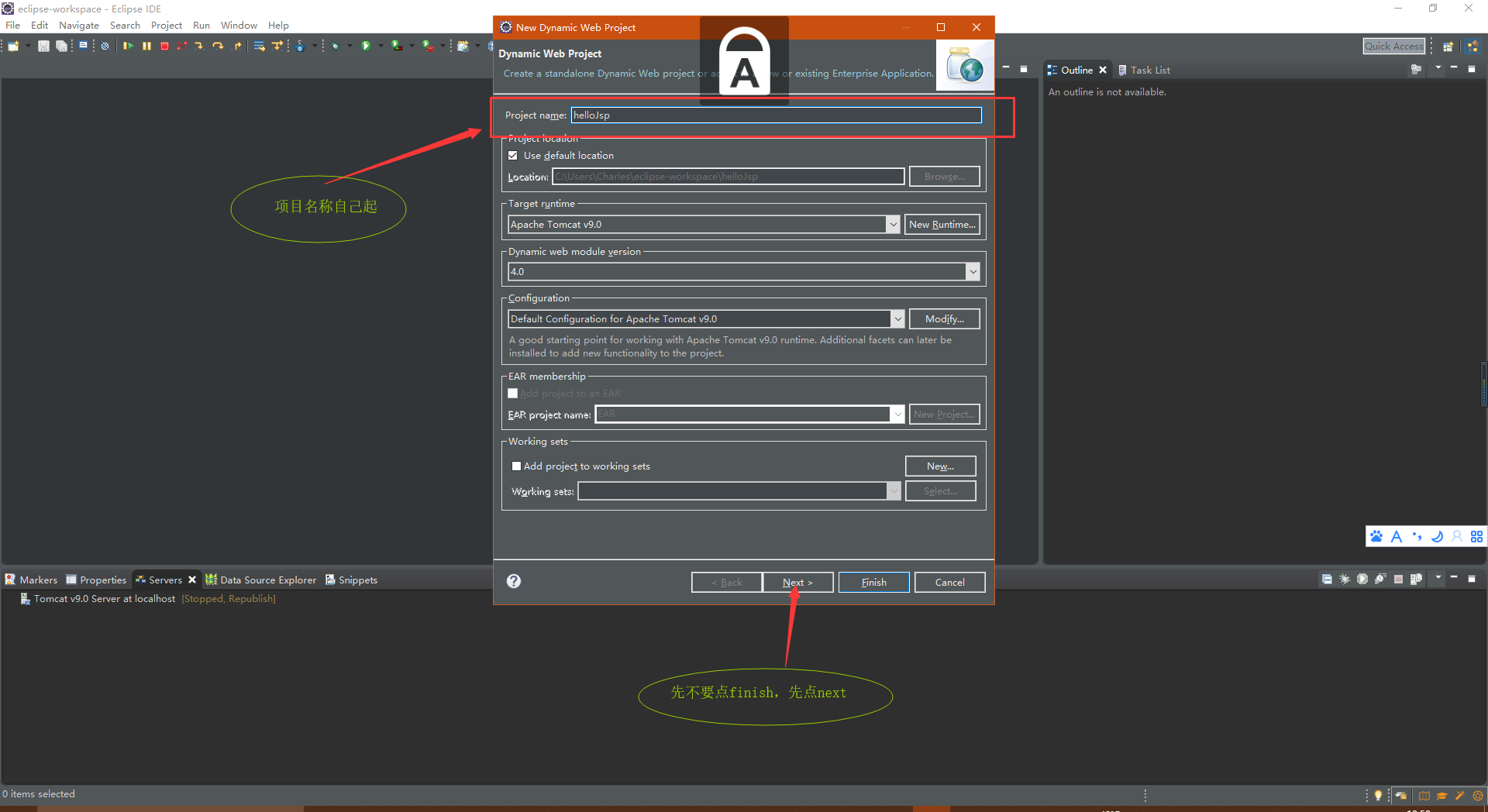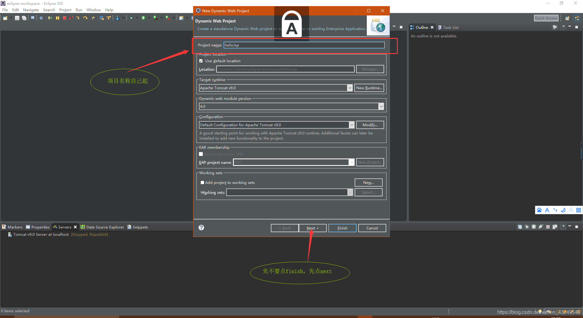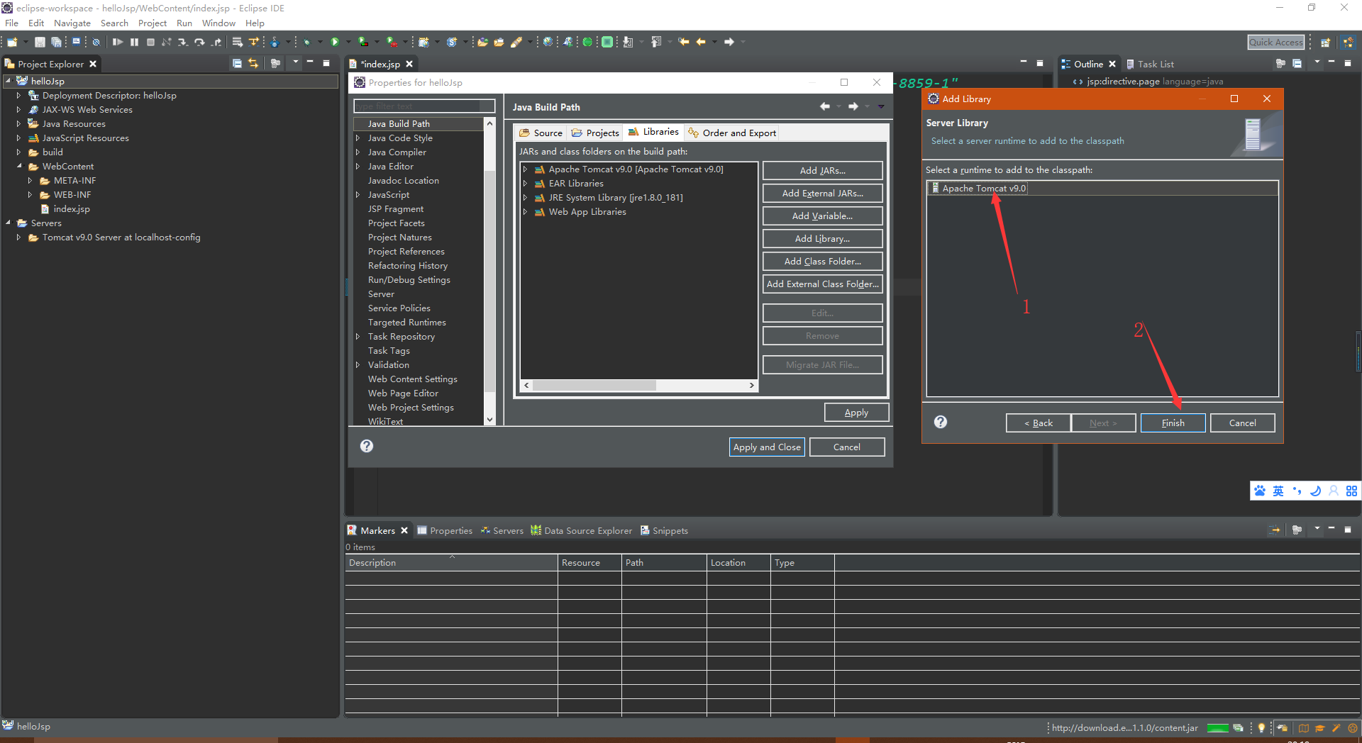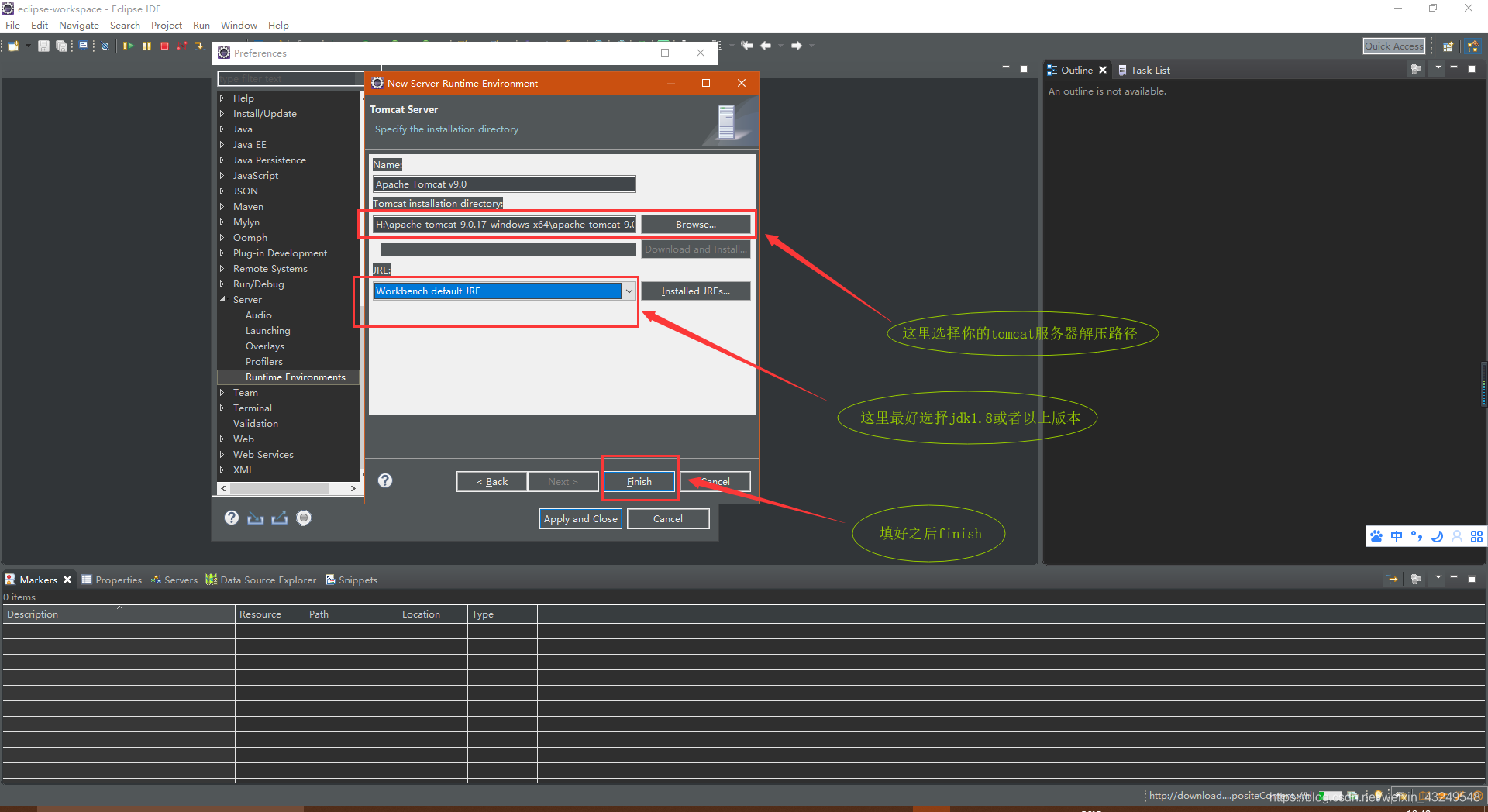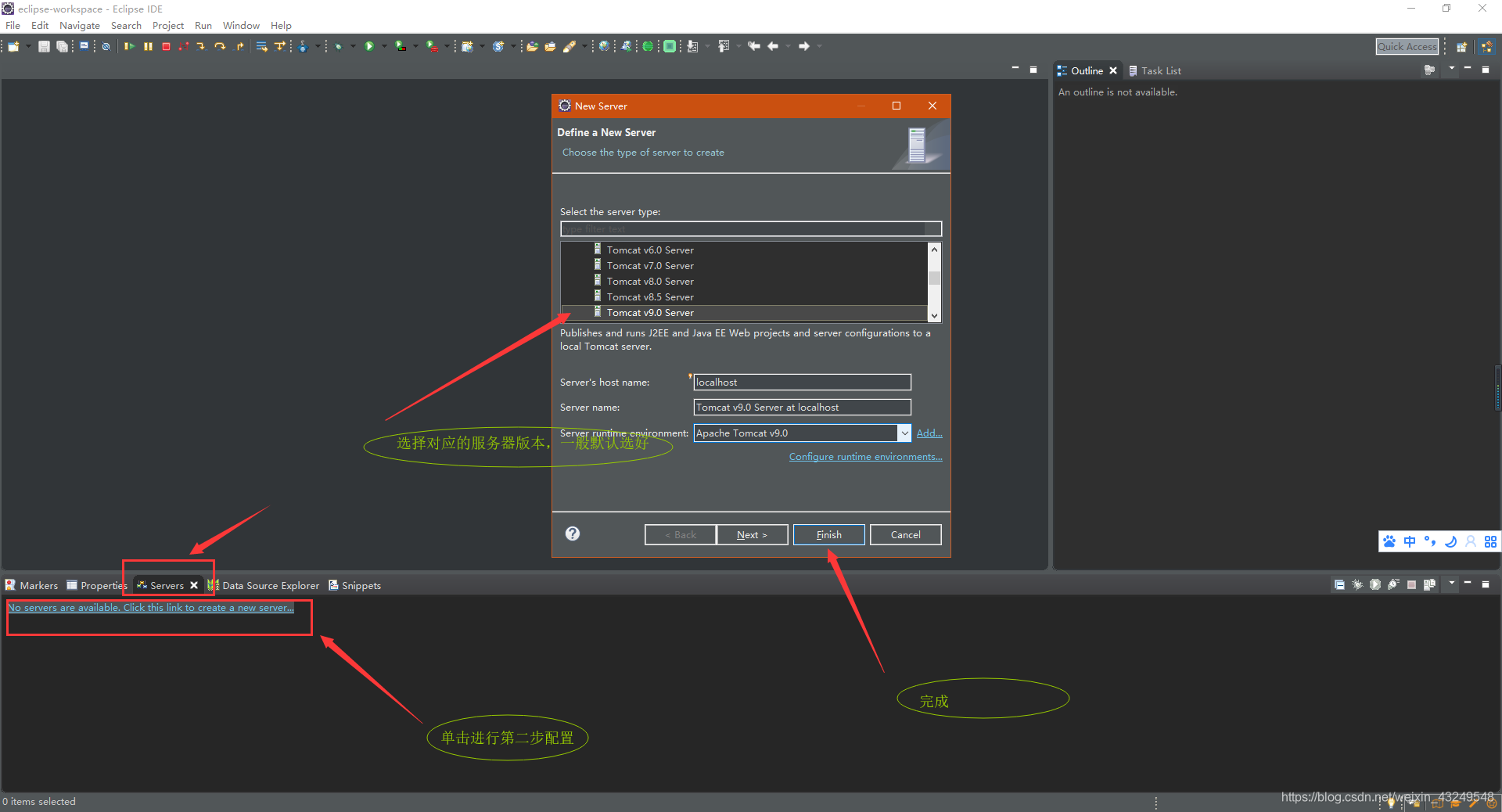 1.eclipse集成tomcat服务器(使用相应的tomcat服务器版本)