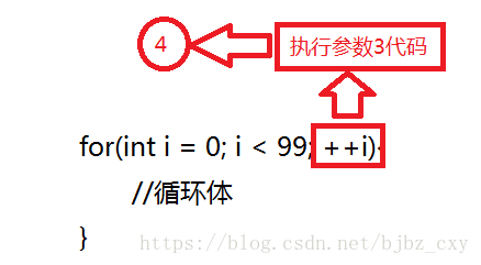 4.执行完循环体里的代码后,就会去执行for循环的第三个参数也就是++i