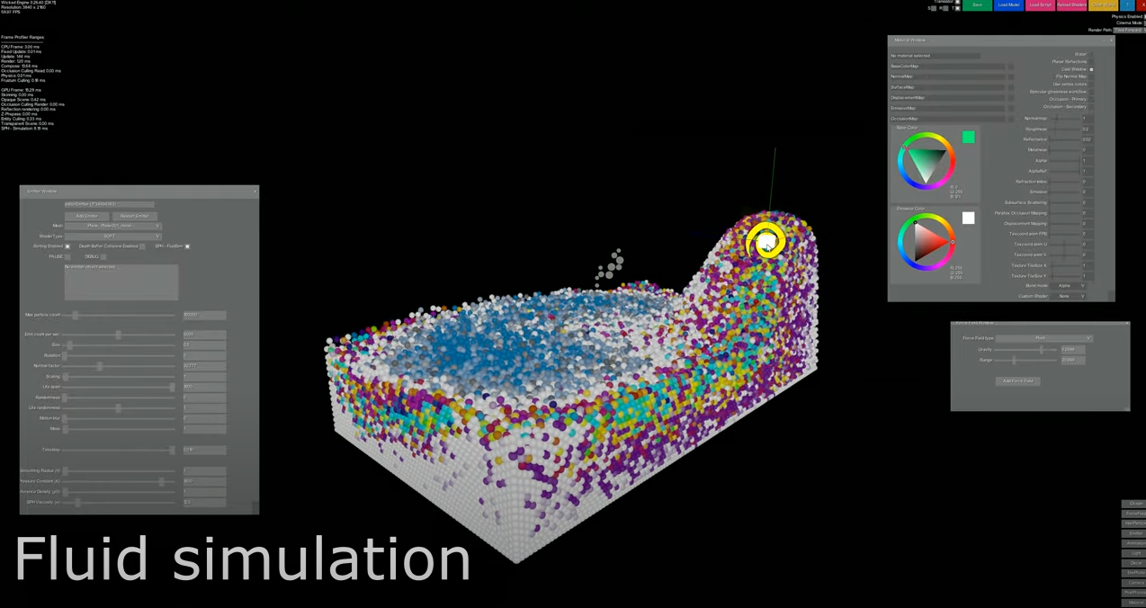 - GPU-based particles (emit from point, mesh, animated mesh)