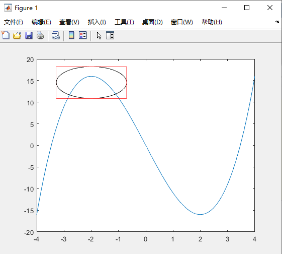 创建一个简单线图并向图窗添加椭圆注释。将 dim 指定为包围椭圆的最小矩形的尺寸和位置。如下所示: