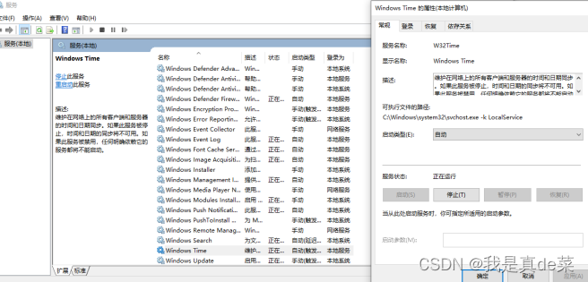 b.将Windows time服务设置为自动启动,点击应用和确定
