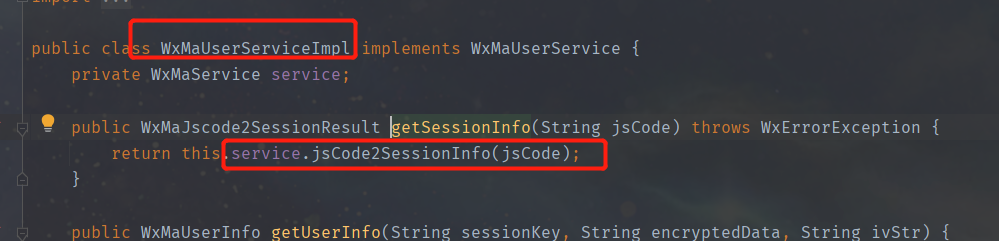 从配置代码中可以看到初始化的时候 new WxMaDefaultConfigImpl、 WxMaServiceImpl 这两个类,那么作用是什么呢?请看登录接口!