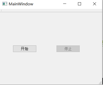 2、MainWindow.ui中放入两个Push Button按钮,第一个text改为“开始”,objectNme改为startButton,第二个text改为“停止”,objectNme改为stopButton;