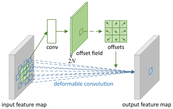 当年看Deformable Convolutional Networks(DCN)的时候最为惊艳,可能看过的文章少,这种打破固定尺寸和位置的卷积方式,让我感觉非常惊叹,网络怎么能够在没有直接监督的情况下,学习到不同位置的offset的,然后可视化出来,能够使得offset后的位置能够刚好捕捉到不同尺寸的物体,太精彩了!