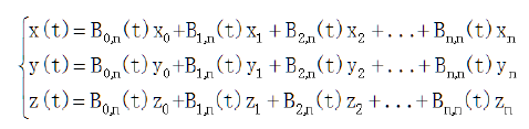 也就是说曲线上每个点的坐标可以由控制点坐标映射得到。 即: