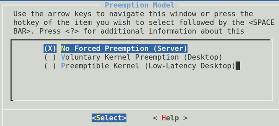 不抢肯定响应差,抢了吞吐会下降。Linux不是一个完全照顾吞吐的系统,也不是一个完全照顾响应的系统,它作为一个软实时的操作系统,实际上是想达到某种平衡,同时也提供给用户一定的配置能力,在内核编译的时候,Kernel Features ---> Preemption Model选项实际上可以让我们编译内核的时候,是倾向于支持吞吐,还是支持响应:
