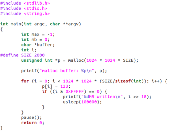上述程序在1GB的电脑上面运行,申请2GB内存可以申请成功,但是在写到一定程度后,系统出现out-of-memory,上述程序对应的进程作为oom_score最大(最该死的)的进程被系统杀死。