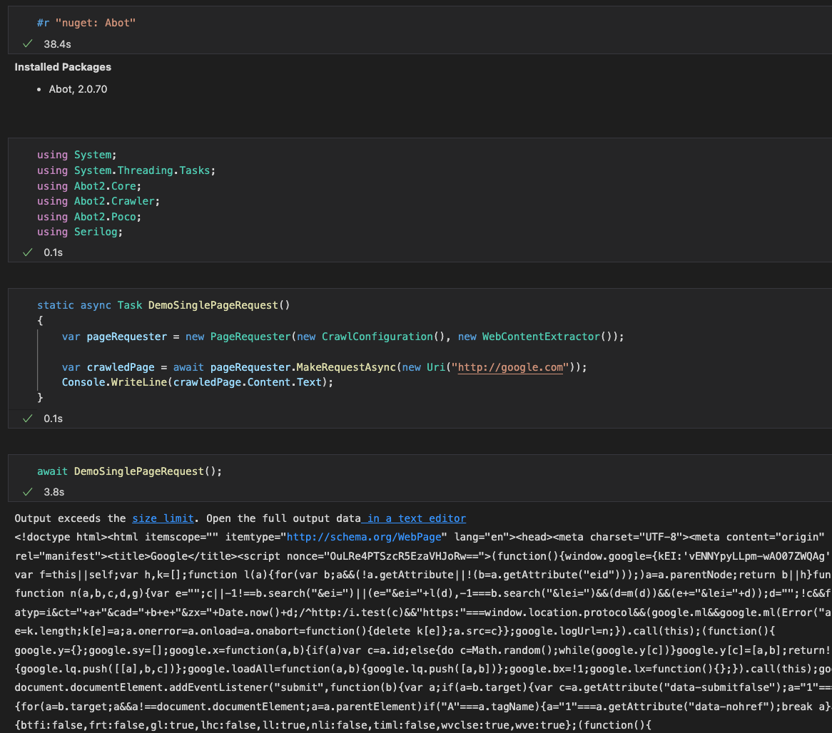 像一些小伙伴,在直播提到的爬虫 , 这里就可以利用 Nuget 通过第三方的包 Abot (了解更多请访问 GitHub - sjdirect/abot: Cross Platform C# web crawler framework built for speed and flexibility. Please star this project! +1.)来完成