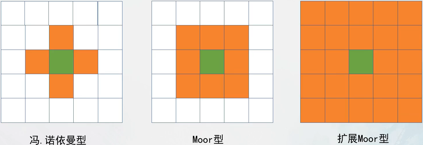 常见的有这三种邻居类型,橙色的为绿色的邻居。