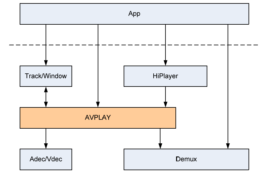 AVPLAY(Audio Video Player)模块整合SDK 内部音视频播放相关模块,提供给用户基本播放业务相关的接口。AVPLAY 在典型媒体播放终端方案中的位置如图所示。AVPLAY 主要依赖ADEC/VDEC/DEMUX 等模块,其向应用或中间件播放器提供基本的播放业务相关接口。